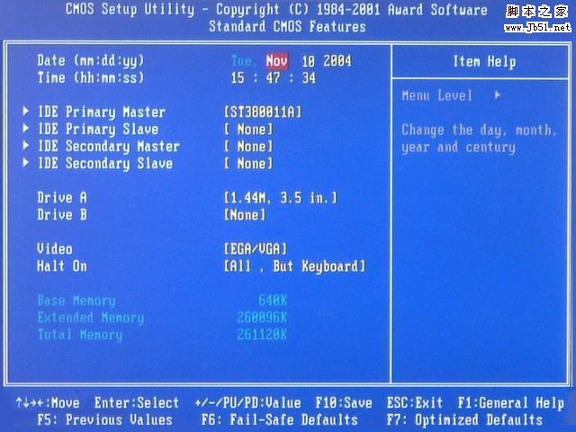 三、Standard CMOS Features(標準CMOS功能設定)項子菜單