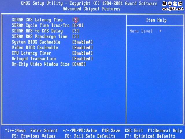 在主菜單中用方向鍵選擇“Power Management Setup”項然后回車,即進入了“Advanced Chipset Features”項子菜單如下圖7