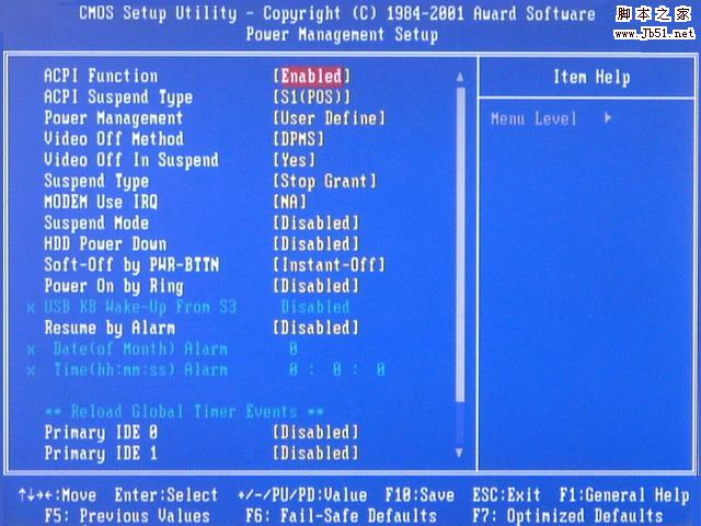 FDD,COM,LPT Port(設置當軟驅,串行口,并行口有存取要求時,是否取消目前PC及該IDE的省電狀態)缺省值為Disabled (禁用)。