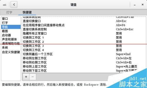 6、你會看到“禁用”兩個字,點擊它,然后按下你喜歡的快捷鍵。一般按慣例是“Super + D”,因為D表示Desktop。設置好了,就能按下它試試。是不是很方便呢?像Windows一樣,第一次按下,隱藏所有窗口并顯示桌面;第二次按下則恢復到之前的狀態。