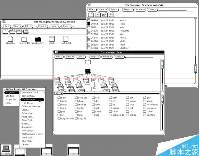 SunOS 4.1.1發布于1990年5月,默認捆綁了OpenWindows 2.0。當普通用戶首次登錄SunOS,將會跳出一個選項讓他們選擇使用環境, 然后在隨后的登錄中自動啟動。OpenWindows是基于X11/NeWS協議的系統。