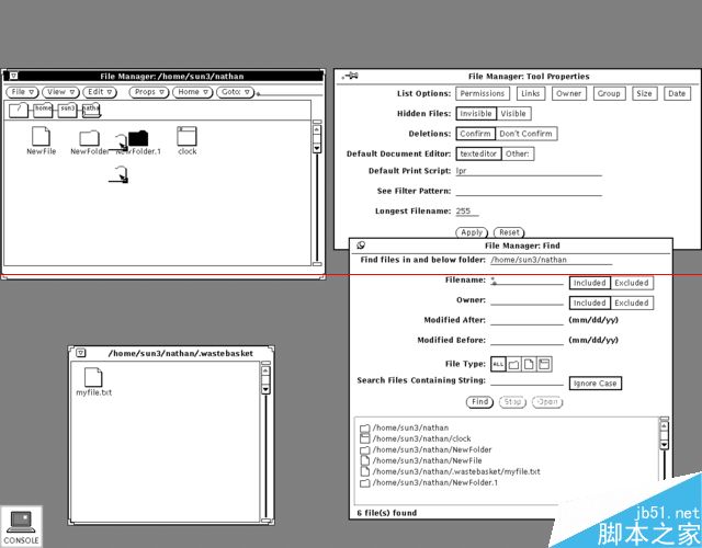 可以通過鼠標將文件或者文件夾拖到任何文件夾中,甚至是廢紙簍里。直到你清空回收站之前,文件會一直在那。這種感覺和后來的Windows 95有種驚人的相似,從菜單可以輸入文字進行查找,你可以指定查找所有文件夾或者指定文件夾。