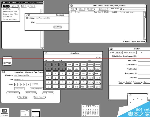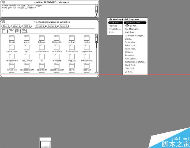 以上是一些SunOS的應用程序,我們看到有計算器、時鐘等多種功能。