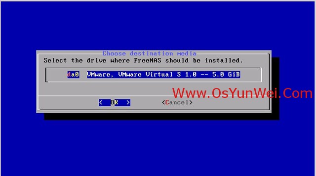 選擇系統安裝硬盤 #這里只有一個硬盤