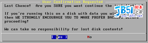 系統會出現提示,“是否確認要開始安裝過程,這是最后的一次選擇”,如果擔心有什么地方有錯誤,可以回頭重新設置。如果沒有問題,選yes開始安裝吧