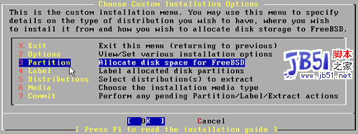 建好分區之后回到自定義安裝選項菜單,選4接著設置系統分區