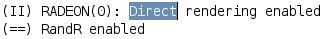 (5):cat /var/log/Xorg.0.log | grep " Direct Rendering enabled",如果出現下面的字樣,引用:(II) RADEON(0): Direct Rendering enabled