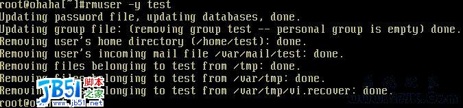 以 rmuser -y 賬號名 ( 自動應答 y/yes ) 這樣要刪除一個賬號就簡單多了。