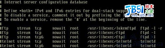 請以 root 的身分,編輯 /etc/inetd.conf 這個檔案。 檔案部分內容如圖 :