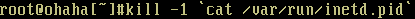 剛剛修改的只不過是設定檔透過 'cat /var/run/inetd.pid' 來取得該服務的 Process ID 。 并藉由送出 -1 ( 數字 ) 參數將程序重新啟動。