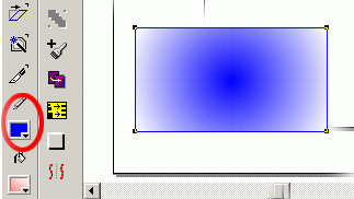 環形漸變是很常見的一種填充模式,你會在填充面板里“漸變”的子選項里發現它。不過FH里還提供了一個方法,如圖,你在我圈選的這個色塊里(就是用來改變線條顏色的色塊)點鼠標左鍵,同時要按住ART鍵,將色塊拖向對象,即可對對象進行環形漸變填充,環形的中心就鼠標停止點。