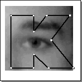 下面我們用一個簡單的例子來解釋剪切、粘貼的概念。首先我們創建字母 K ,接著在頁面里導入一個眼睛的位圖文件。