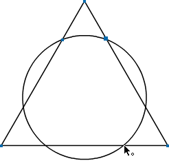 步驟五:現在我們來切割圓形對象,首先選擇它,然后應用刻刀工具在圓形輪廓上移動,由于打開了 snap to point ,那么當鼠標移到上次三角形與圓形的交點時會出現一個實心的小點,這時點擊圓形便可以切割它,依次在相關交點上 點擊,將圓形進行分割。