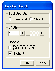 步驟三:雙擊刻刀工具打開對話框,如上圖所示,取消對 close cut paths 的選擇。