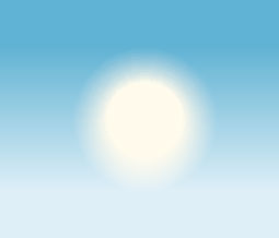 繪制大小兩個(gè)圓,小圓代表太陽的本體,大圓代表太陽的光環(huán)。將大圓的直徑設(shè)為與中間矩形的高度值相同。將兩個(gè)圓進(jìn)行居中對(duì)齊并且使大圓和下方的漸變色矩形頂對(duì)齊。 現(xiàn)在要給兩個(gè)圓設(shè)定漸變色,首先給小圓設(shè)定兩種接近白色的漸變色,線性漸變。然后要將大圓的漸變色設(shè)定為與其下方的漸變色矩形相同