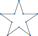步驟三:將復制品解組,用鼠標把它框選并執行 modify->split ,將五角星打散成 10 個首尾相連的獨立線段,再次將它們框選,執行 X tras menu->distort->add point (也可在工具欄上找到),為每個線段增加一個節點。結果如圖所示。