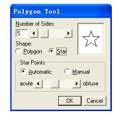 在這個例子中我們首先要創建一個五角星,雙擊 polygon 工具,打開如圖所示的對話框,進行相應的設置。