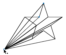 步驟五:將該聚集點拖到外面。現在你看到五角星的每個頂點都向外延伸出線段并匯聚于一個消失點,形成一種縮放的效果。但現在還沒完,呵呵。