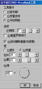 1、 首先雙擊工具箱中的自由繪制工具,在彈出的對話框中設置選擇書法筆工具,.具體的設置參數如圖8.1所示。
