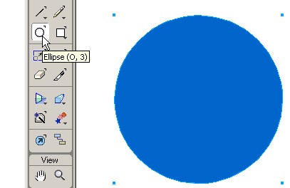 選擇工具面板中的橢圓工具,按住Shift鍵在當前文件中畫一個圓形,在工具面板下面顏色選項中,設置一個填充色,本例中我選擇藍色,如下圖所示。