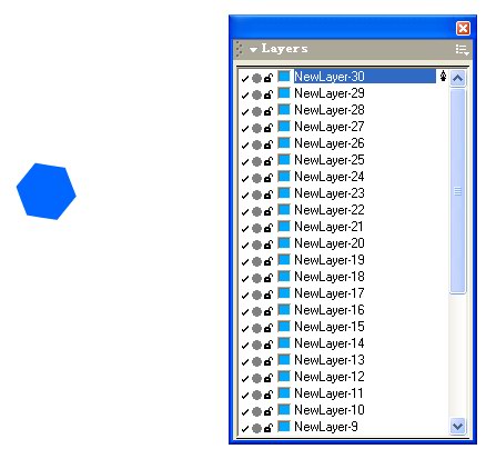 3)點擊菜單Xtras/Animate/Release to layer,這時調出圖層面板(F2)可以發現,由Blend產生的對象已分別分散到了各個層里。