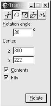 2、選中橢圓,點擊“Edit/Clone”命令,復制一個橢圓,選中復制的橢圓,然后雙擊工具欄中的[Rotate]旋轉工具,彈出Transform面板,其設置如圖2所示。(注意:其中Center中的x、y值依據第一個橢圓的下方中心而定);執行該命令后將該橢圓往下面移動少許,此時的工作頁面如圖3所示。
