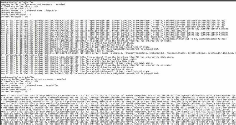 7、查看日志信息,可以用display logbuffer或者display trapbuffer。這兩個命令為會經常用到。