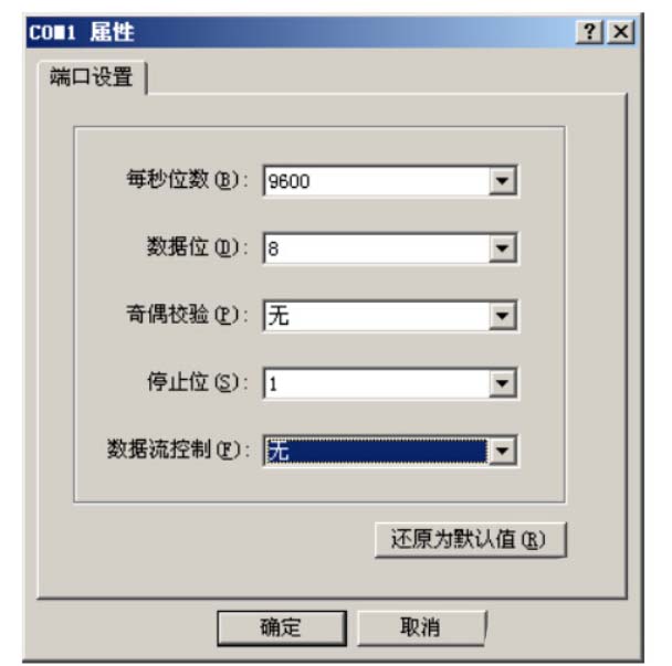 參數要求:波特率為9600,數據位為8,奇偶校驗為無,停止位為1,流量控制為無,選擇終端仿真為VT100。