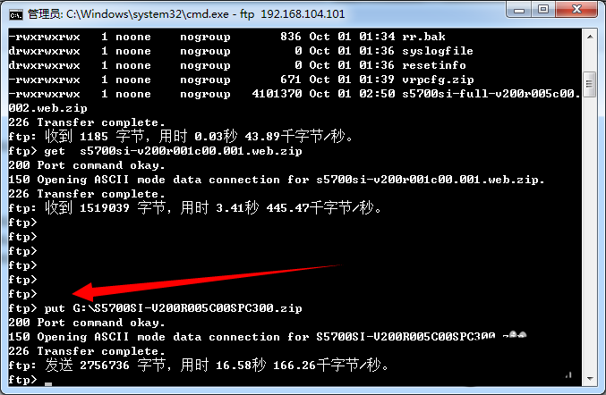 17、上傳完成之后我們等了交換機(jī)看看,我們上傳的文件已經(jīng)存在交換機(jī)上