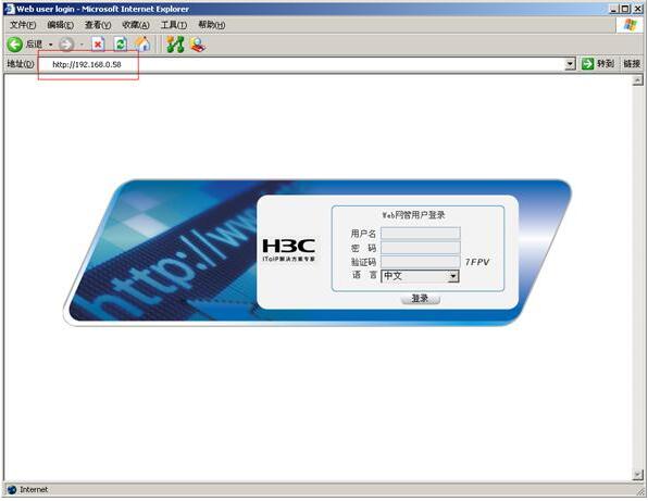 # 在PC的瀏覽器地址欄內輸入設備的IP地址(此處設備的IP地址以192.168.0.58為例)并回車,瀏覽器將顯示Web網管的登錄頁面,如圖3-2所示: