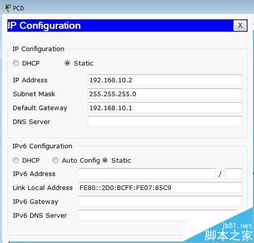 pc0的ip地址為192.168.20.2 255.255.255.0 以下給出pc0的ip配置。如圖所示: