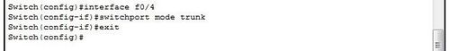 5、在二層交換機上與三層交換機相連的端口(此處為F0/4端口)定義為trunk模式。命令如圖所示: