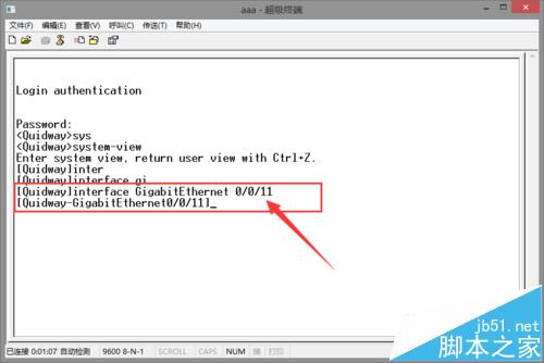 6、進入接口視圖,[Quidway]interfaceGigabitEthernet 0/0/11