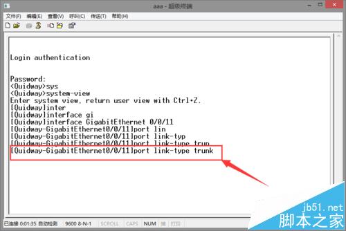 7、配置端口為trunk模式,[Quidway-GigabitEthernet0/0/11]portlink-type trunk