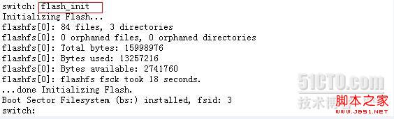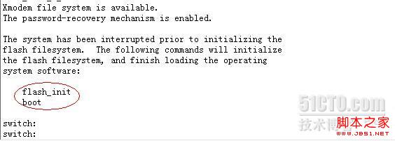 - 1、給交換機加電的同時,按住Mode鍵,進入單用戶模式 2、進入后會提示flash_init和boot兩個命令,輸入flash_init