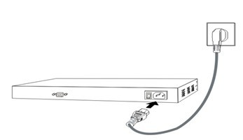 交換機的輸入電壓范圍是100-240V AC(50-60Hz)的交流電,交換機的內置電源系統可以將實際輸入的電壓自動調整為其工作電壓。電源接口位于交換機的后面板上,請將電源線一頭插在交換機后面板上的電源接口上,另一頭插在電源插座上。