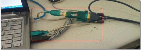 那么另外一端,我們是不是可以接到自己的筆記本上呢,如果沒有相同的接口,只好用USB轉了哦,記得還要安裝usb轉串口驅動(網上找就有),這樣這條線才能工作的。