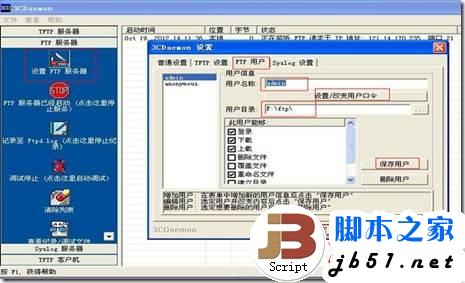 接著設置用戶名和密碼、用戶目錄,然后點擊保存用戶,最后點確定。這樣我們的FTP服務器就好了,記得筆記本的IP就是FTP服務器的訪問IP。