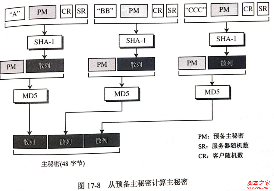 這樣握手協(xié)議完成,下面看下什么是預備主密鑰,主密鑰是怎么生成的。為了保證信息的完整性和機密性,SSL需要有六個加密秘密:四個密鑰和兩個IV。為了信息的可信性,客戶端需要一個密鑰(HMAC),為了加密要有一個密鑰,為了分組加密要一個IV,服務也是如此。SSL需要的密鑰是單向的,不同于那些在其他方向的密鑰。如果在一個方向上有攻擊,這種攻擊在其他方向是沒影響的。生成過程如下: