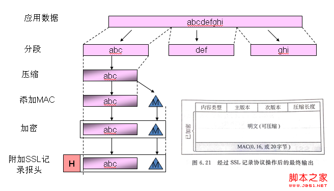 記錄協(xié)議在客戶機和服務器握手成功后使用,即客戶機和服務器鑒別對方和確定安全信息交換使用的算法后,進入SSL記錄協(xié)議,記錄協(xié)議向SSL連接提供兩個服務: