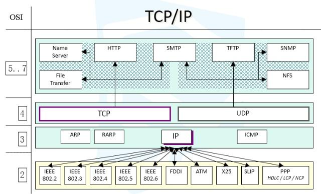 說明:網絡協議與標準是基于OSI七層模型,每一層都有其對應的協議。