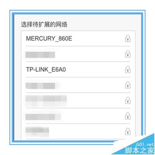 8、下一步無線中繼器就會自動掃描能發(fā)現(xiàn)的所有無線,如下圖所示,小編的居民區(qū)里的無線真是密密麻麻,無線的輻射對人體有沒有害呵,選中自己家里的那個無線,雙擊進入。