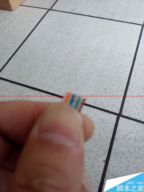 5、將雙絞線按照568B接法,緊密排列在一起,并且要求末端到中端很直,頂端因為后面要剪掉,稍彎點無防。568B接法是:白橙、橙、白綠、藍、白藍、綠、白棕、棕。