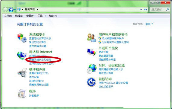 或者,從“開始”菜單進入“控制面板”點擊“查看網絡狀態和任務”。