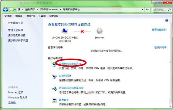 第二步:在“網絡共享中心”點擊“設置新的連接或網絡”,這個新的連接也就是我們所要的局域網。