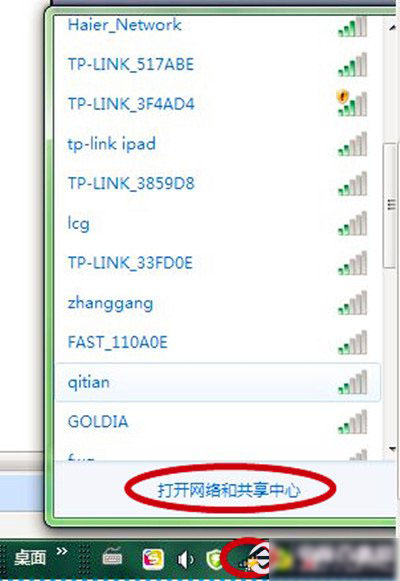 第一步:打開“網絡和共享中心”,方法有兩個:右鍵點擊任務欄右下角“網絡圖標”,點擊“打開網絡和共享中心”;