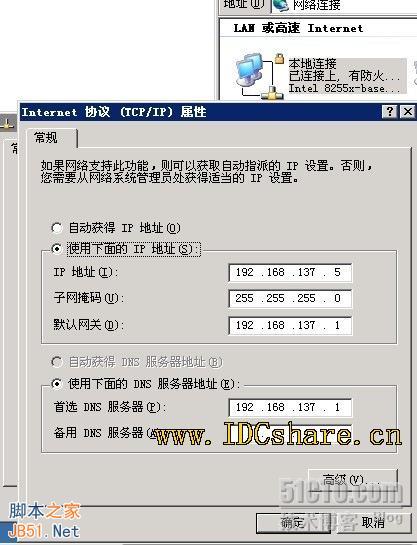 接下來跳出來一個窗口,點確定.表示開啟Internet連接共享,本地網卡ip被設置成192.168.137.1
