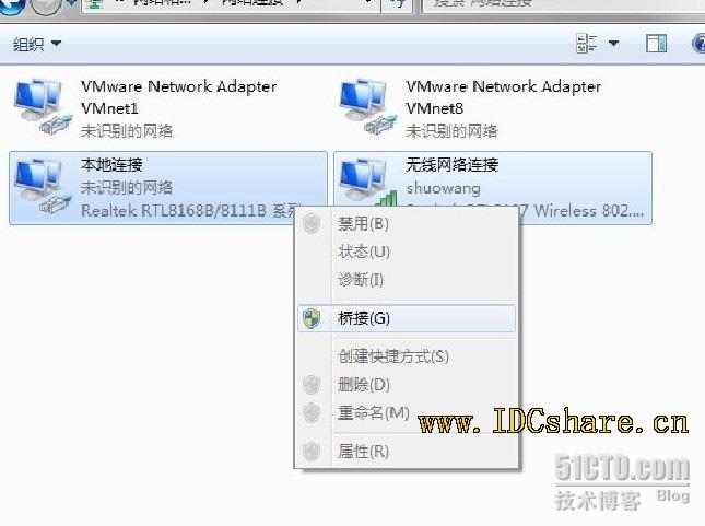 然后用鼠標圈住本地連接和無線網絡連接,右擊屬性點橋接.