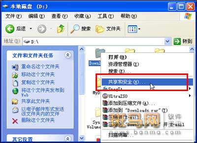 如圖6,打開資源管理器,右擊需要共享的文件夾,選擇“共享和安全”命令。