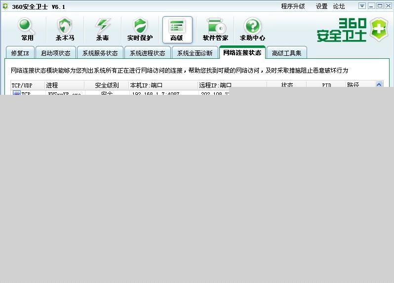 這樣,玩游戲只通過網卡A。而網卡B則可以上任意的網絡,就算是無線網卡B掉線了,也不影響游戲的進行。是不是很爽呢?當然,游戲有多個區域和多個服務器IP地址的,你都要通過netstat -a -n -p tcp記下。也可以通過更方便化的360安全衛士的網絡監控查到相應的IP。